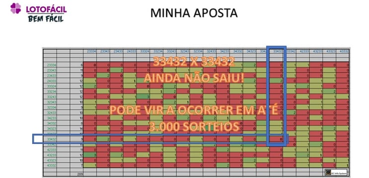 Todo jogo de loteria é disposto em um "volante de aposta" que contém linhas, geralmente com 10 elementos e colunas, que variam em função da quantidade de dezenas do jogo. / A LOTOFÁCIL, que é a loteria que oferece mais chances de acerto possui 5 linhas e 5 colunas.